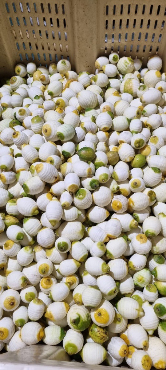 A operazione di pelatura ultimata, il limone passa attraverso un sistema opzionale di taglio, che lo divide a metà. Spesso tale processo termina con una spremitura dal processo molto naturale, effettuata da due cinghie che, tramite una leggera pressione, ne estraggono il succo biologico, naturale e senza conservanti.