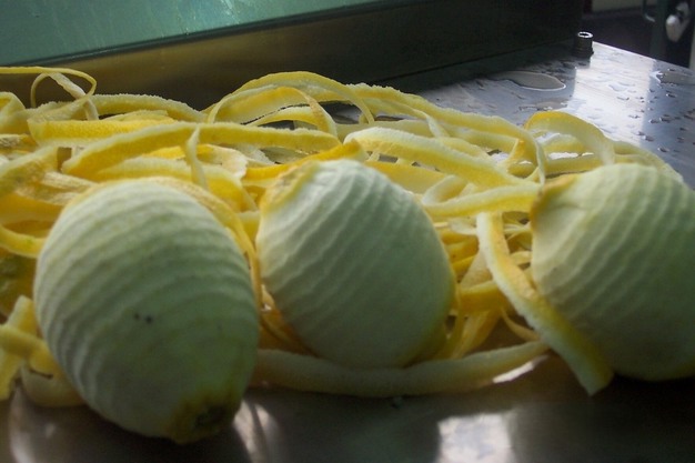 A operazione di pelatura ultimata, il limone passa attraverso un sistema opzionale di taglio, che lo divide a metà. Spesso tale processo termina con una spremitura dal processo molto naturale, effettuata da due cinghie che, tramite una leggera pressione, ne estraggono il succo biologico, naturale e senza conservanti.