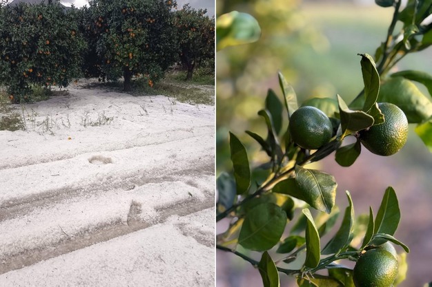 Grandine e pioggia danneggiano il raccolto degli agrumi