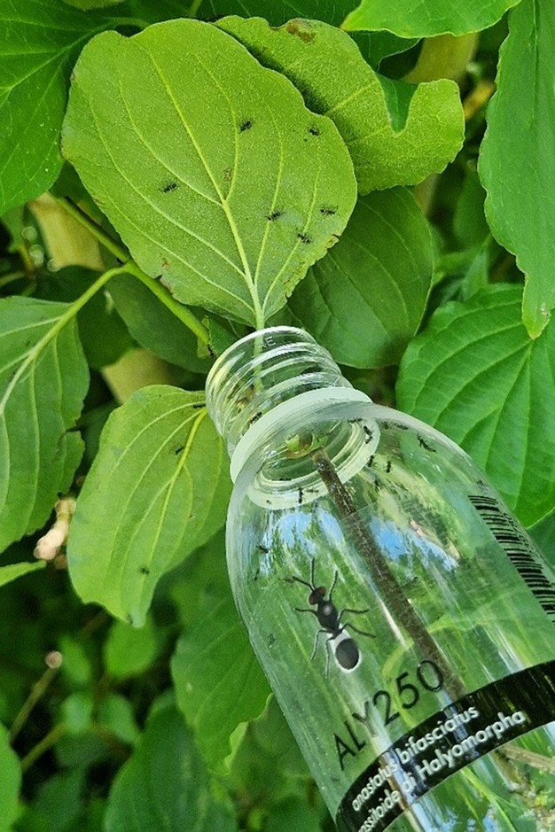 Per questo motivo, l'Azione 1 del Sottoprogetto ha scelto di affiancare al lavoro della vespa samurai un antagonista autoctono come A. bifasciatus, già presente nei nostri ecosistemi. In collaborazione con Bioplanet (CBC Biogard) sono stati realizzati rilasci mirati di migliaia di individui, distribuiti in diversi siti georeferenziati, seguiti da un monitoraggio sistematico degli effetti. Questo parassitoide, allevato da biofabbriche europee e già impiegato contro altre cimici (come la verde Nezara viridula), ha infatti già dimostrato di poter svolgere un ruolo importante nella parassitizzazione delle uova della cimice asiatica.
