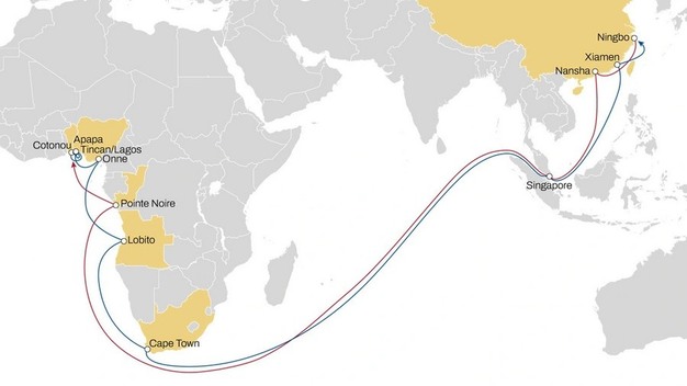Ningbo – Nansha – Singapore – Pointe Noire – Cotonou – Apapa – Tincan – Onne – Lobito – Città del Capo – Singapore – Xiamen – Ningbo