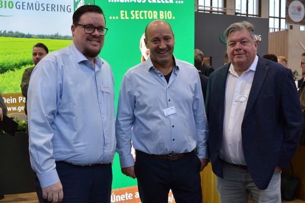 Christiaan Koellreuter (a sinistra) e Wilhelm Krogmann di Nordgemüse hanno incontrato il loro partner commerciale di lunga data, Hans Widmann (al centro) dell'omonima azienda bavarese, all'ultima edizione di Fruit Logistica. Entrambe le aziende fanno parte di Gemüsering.