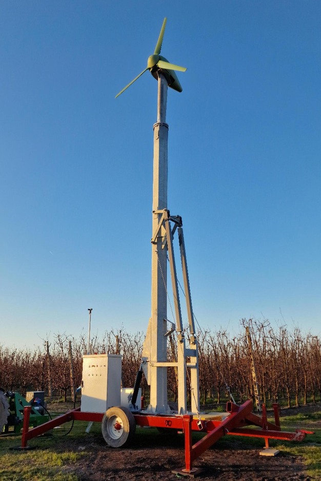 "Anche per la nuova stagione, il mercato conferma l'interesse per il nostro ventilatore in versione mobile Antibrina 3-22C, installato su carrello agricolo - spiega Manuele Morelli - Abbiamo progettato l'unico ventilatore antibrina mobile alto 10 metri. Si tratta dello stesso modello montato su plinto di fondazione, con le stesse prestazioni in termini di copertura dei ventilatori fissi, ma con la flessibilità di quelli mobili. La particolare progettazione ci ha consentito inoltre di realizzare un macchinario che, nonostante l'altezza, risulta molto compatto e, una volta chiuso, può essere facilmente spostato all'interno dei filari".