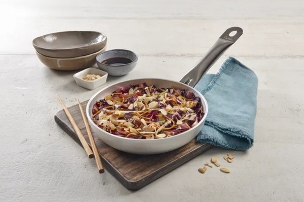 ■ Radicchio, cavolo e carote con salsa di soia e mandorle: per chi cerca un contorno leggero ma ricco di sapore, questo mix è la soluzione ideale. Le verdure saltate si arricchiscono di una nota orientale e della croccantezza delle mandorle, per un piatto che conquista al primo assaggio.