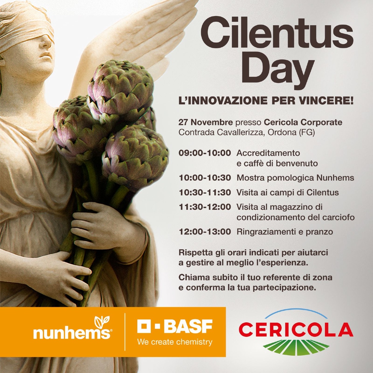 Il 27 novembre 2025 il mondo dell'ortofrutta si dà appuntamento a Ordona (FG) per il Cilentus Day, l'evento promosso da BASF-Nunhems insieme a Cericola Corporate, realtà di riferimento nella produzione e lavorazione del carciofo. Una giornata interamente dedicata all'innovazione varietale, alle tecniche di coltivazione e alle migliori pratiche di gestione della filiera.
