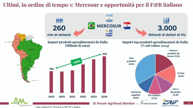 Anche gli accordi commerciali possono giocare un ruolo rilevante: il Mercosur, se ratificato, riguarda un'area da 260 milioni di abitanti dove l'export italiano è già cresciuto del 70%; l'intesa con l'Indonesia interessa invece un Paese in espansione che negli ultimi anni ha aumentato del 90% le importazioni di prodotti italiani.
