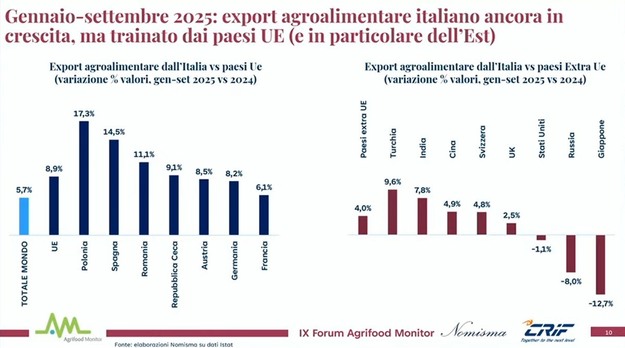L'agroalimentare italiano continua a essere uno degli asset più solidi e riconosciuti del Paese, un comparto capace di generare valore e identità culturale. Ma oggi opera in un contesto globale carico di incognite, tra nuove politiche commerciali, tensioni geopolitiche e consumi interni in affanno. È il quadro emerso dal IX Forum Agrifood Monitor organizzato da Nomisma e CRIF, con il supporto di Crédit Agricole Italia, dove sono stati analizzati numeri, rischi e opportunità del sistema food nazionale.