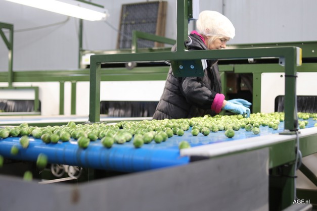 Nell'area di lavorazione c'è un continuo via vai di camion carichi di cavoletti appena raccolti. I piccoli cavoli verdi vengono scaricati automaticamente dalle macchine. Una selezionatrice ottica di Tumoba separa, grazie all'intelligenza artificiale, i cavoletti idonei al consumo da quelli scartati e destinati ai mangimi. Corstiaan è molto soddisfatto: "È il miglior investimento che abbia mai fatto!", afferma deciso.