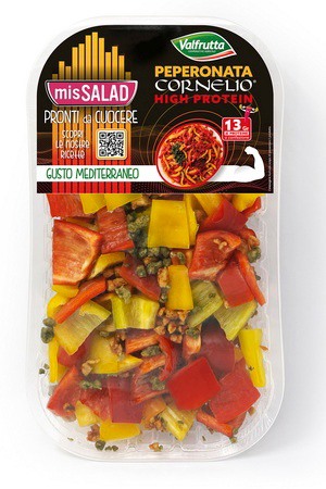 Accanto alle referenze già presenti a catalogo – Minestrone di verdure, Cubetti di zucca e Spaghetti di verdure High Protein – l'azienda presenta anche la Peperonata Cornelio® High Protein al gusto mediterraneo, un prodotto di IV gamma in vassoio da 300 grammi, con 13 grammi di proteine per confezione. La nuova referenza, in co-branding con Valfrutta Fresco, amplia ulteriormente una linea che nasce dall'analisi dei consumi, dei trend nutrizionali e delle esigenze operative del reparto.