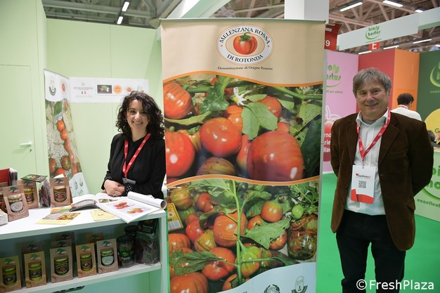 Chi si è affacciato per la prima volta ad un evento nazionale è la Melanzana Rossa di Rotonda DOP. Maria Teresa Carolei ed Enrico de Lorenzo confermano che la fiera ha permesso di far conoscere la loro melanzana rossa (che non si ossida dopo il taglio) ad alcuni importanti operatori del retail.