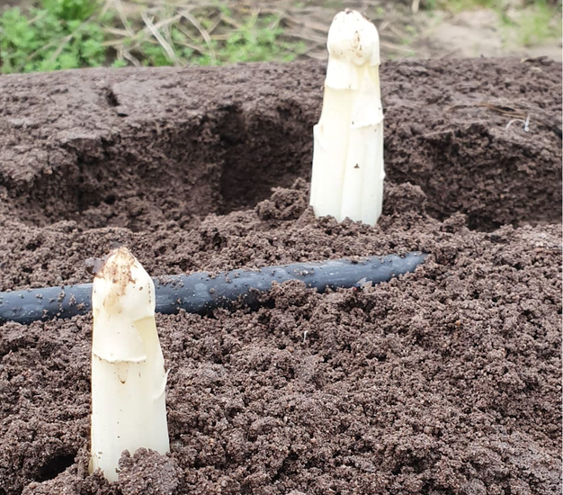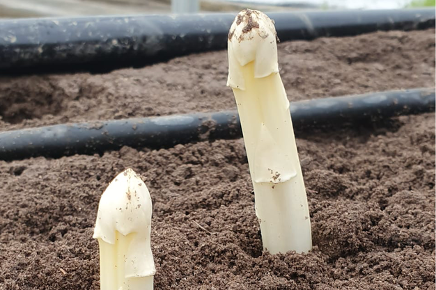Sebbene le ultime settimane siano state fredde la coltivazione non ne ha risentito. "Grazie al nostro sistema di riscaldamento sotterraneo non abbiamo subito i danni del gelo. Inoltre, la vegetazione era in ottime condizioni quest'autunno, il che ha garantito riserve sufficienti e quindi anche gli asparagi belli e grossi che vediamo ora".