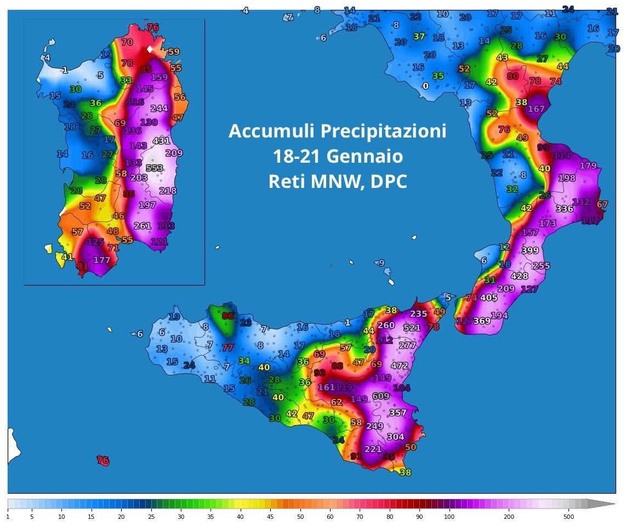 © C. EuroagrumiLe aree più colpite dall'uragano Harry (fonte elaborazione di Meteonetwork.it)