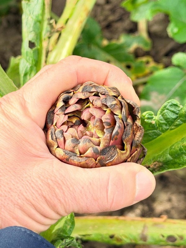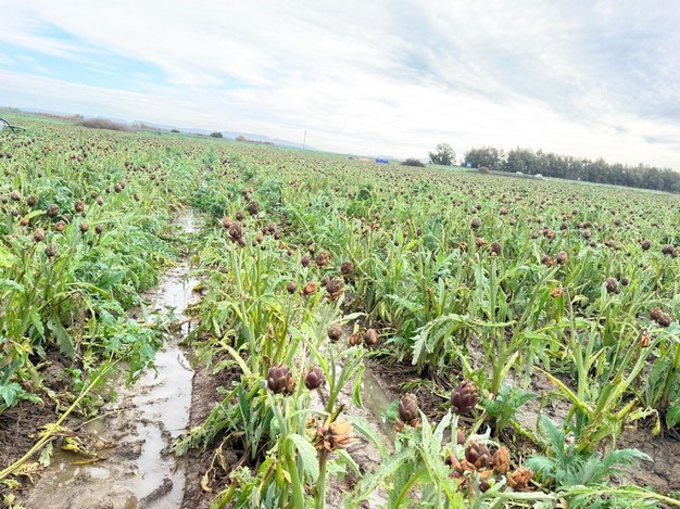 "Le carciofaie si mostrano sature d'acqua e difficilmente gestibili. Il recente passaggio del ciclone Harry può essere definito la goccia che fa traboccare il vaso di una stagione già gravemente compromessa. Le produzioni hanno subito danni combinati di vento e pioggia. L'impraticabilità dei campi impedisce l'accesso ai mezzi meccanici, costringendoci a soluzioni tecnologiche alternative: si ricorre infatti all'uso di droni per le concimazioni, mentre le operazioni di raccolta avvengono lentamente e rigorosamente a piedi. La situazione fitosanitaria rimane grave: l'eccesso di acqua sta facendo morire per asfissia le piante, ma il problema sono anche l'umidità e il caldo che favoriscono le malattie fungine".