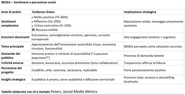 L'analisi qualitativa delle interazioni mostra un giudizio molto positivo, con una partecipazione attiva e consapevole da parte della community. Le parole più ricorrenti – bellissime, fantastiche, concrete, utili, necessarie – restituiscono l'immagine di un'innovazione percepita come credibile e funzionale, non come un'idea astratta o un'operazione di greenwashing.
