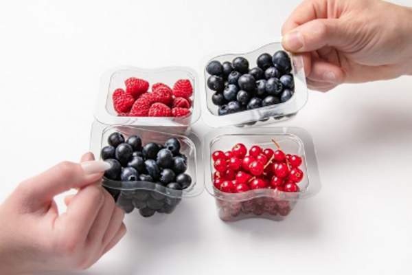 SharpTek Punnet – Un imballaggio monomateriale innovativo e completamente riciclabile per bacche delicate. Questo imballaggio protegge la frutta senza bisogno di ulteriori imbottiture e riduce il peso dell'imballaggio del 17%.