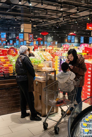 Foto a destra: degustazione di Tessa in un supermercato cinese