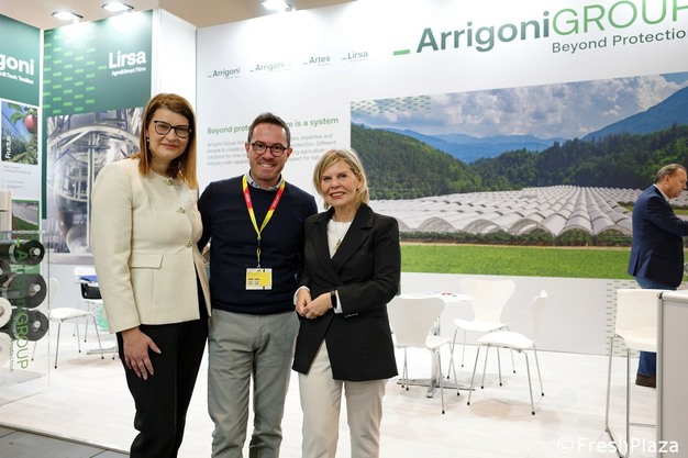 © Rossella Gigli | FreshPlaza.itMilena Poledica, Giuseppe Netti e Patrizia Giuliani presso lo stand allestito a Fruit Logistica 2026.