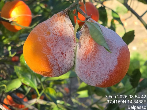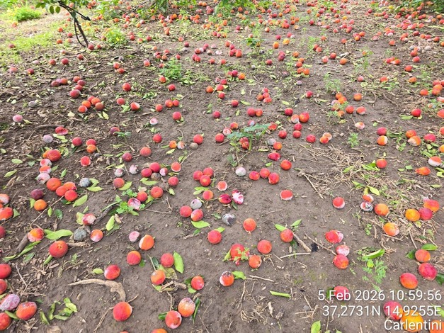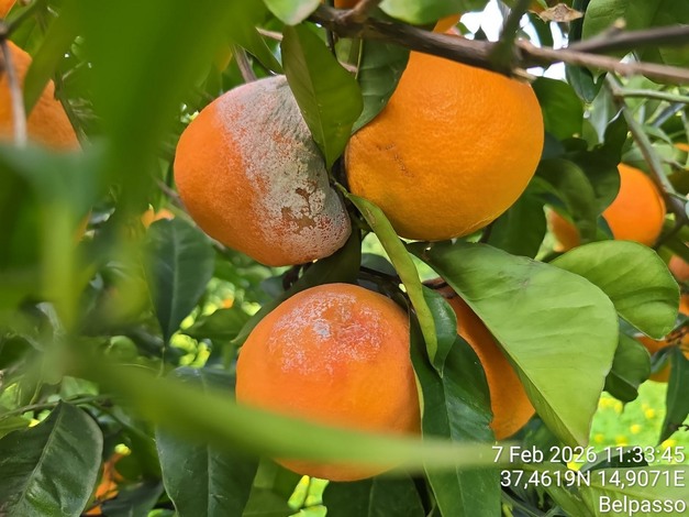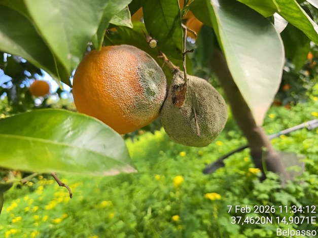 "La persistenza della pioggia e l'assenza di sole e ventilazione post-evento hanno creato l'habitat ideale per la proliferazione di muffe. Sono stati identificati attacchi massicci di Phytophthora Citrophthora. Il deterioramento è così rapido che i frutti caduti tendono a 'sciogliersi' e scomparire visivamente entro due settimane, lasciando solo una traccia bruna, prima di essere avvolti dalle muffe".