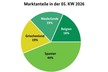 La presenza dei cetrioli spagnoli, dominanti sul mercato tedesco, è migliorata in alcune zone grazie a condizioni di coltivazione più favorevoli, ma è rimasta comunque piuttosto limitata. Di conseguenza, le quotazioni elevate spesso sono rimaste invariate. In alcune aree, tuttavia, i prodotti spagnoli sono risultati di calibro troppo piccoli o il loro stato di conservazione ha lasciato a desiderare, per cui è stato possibile venderli solo con un forte ribasso dei prezzi. Inoltre, secondo il rapporto BLE, sono arrivati sempre più frequentemente lotti greci a basso costo, che sono stati venduti rapidamente grazie ai loro prezzi contenuti.