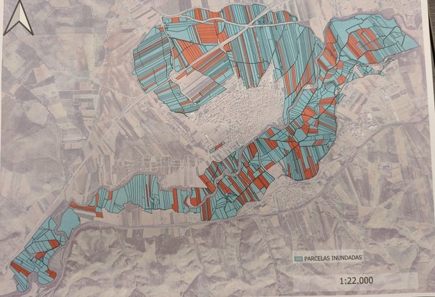 Mappa delle particelle allagate intorno al comune di Huétor Tájar