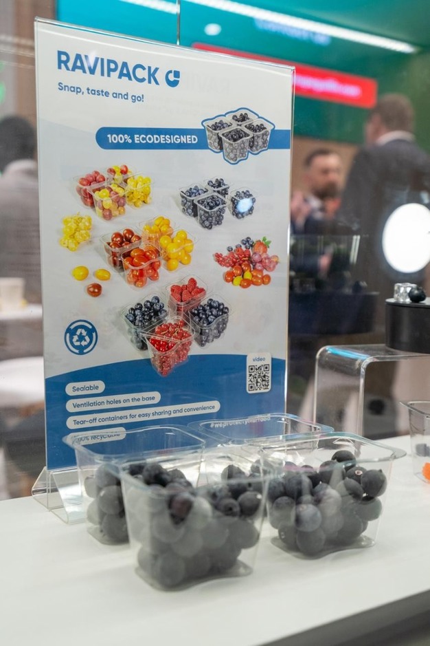 Parallelamente, abbiamo posto l'accento sullo sviluppo di confezioni pratiche e "nomadi". Formati più adatti alle nuove modalità di consumo, più semplici da utilizzare e più facili da vendere. Lungi dall'essere un fenomeno di moda, lo snacking nomade, "on-the-go", è ormai un comportamento diffuso: si cercano formati più facili da aprire e richiudere, soluzioni pratiche da consumare ovunque, in mobilità, con l'idea di ridurre gli sprechi. Abbiamo quindi proposto un'ampia gamma di scatole con cerniera e vaschette richiudibili, progettate per proteggere e valorizzare frutta e verdura in diversi momenti di consumo. Con Ravipack Snap & Go, ad esempio, l'innovazione è integrata nei gesti quotidiani: si tratta di piccoli vassoi richiudibili in rPET, pensati per frutti rossi, pomodorini e frutta secca, che possono essere divisi in quattro parti: questo design porzionato aiuta a ridurre lo spreco alimentare e rende il consumo ancora più semplice e intelligente... persino divertente! Un altro esempio è la gamma DISTRIPACK di shaker in rPET con apertura facile, che offre un esclusivo sistema di versatore, un coperchio "flip-top" richiudibile e una ventilazione ottimizzata; un formato facile da tenere in mano, ideale per chi desidera consumare frutta come mirtilli o miscele durante la giornata: in questo modo è possibile gustare in qualsiasi momento della giornata uno snack sano, sempre buono e sempre fresco.