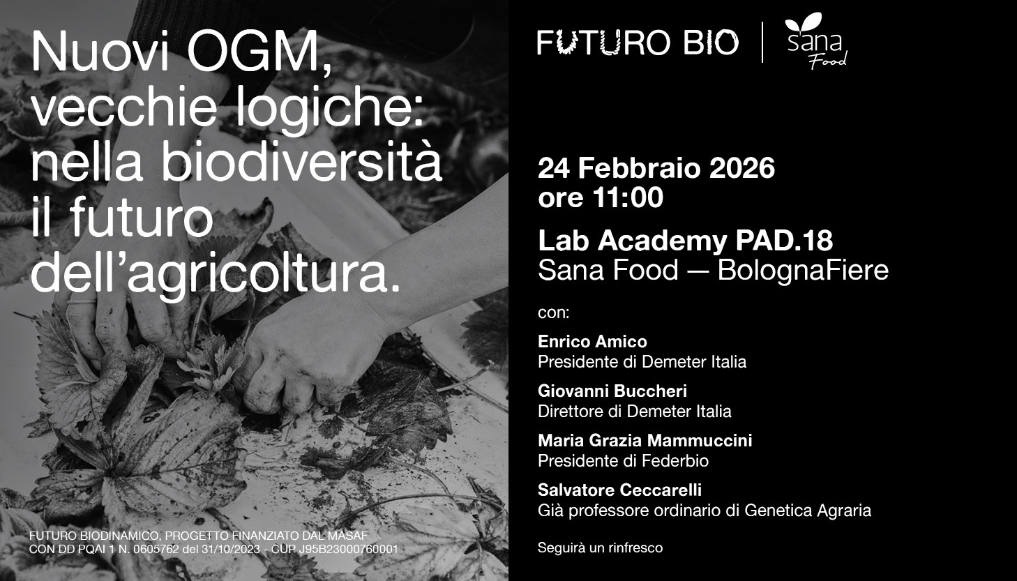 L'appuntamento, dal titolo "Nuovi OGM, vecchie logiche: nella biodiversità il futuro dell'agricoltura", si terrà martedì 24 febbraio 2026, alle ore 11.00, presso la Lab Academy (Padiglione 18) di BolognaFiere.