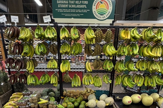 Sul fronte banane, presenti solo in versione organic, quindi bio, la peculiarità da evidenziare è l'esposizione su una parete bilaterale, e con un lato dedicato a frutti di colore 2/3 e l'altro per i frutti colore 4/5. L'acquisto diventa quindi intuitivo e declinato sulle esigenze del cliente.