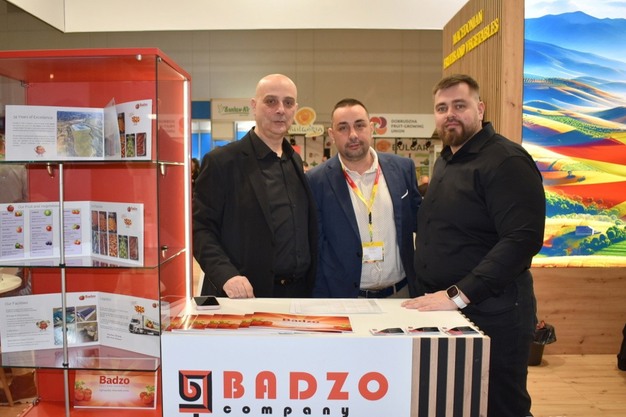 Ivan Popov (a sinistra), Vasil Shapkarov (al centro) e Anton Semenov (a destra) di Badzo alla Fruit Logistica 2026