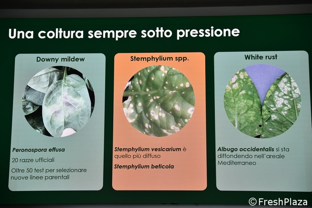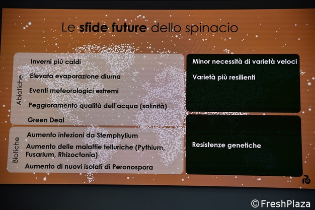 Dagli Stati Uniti, l'intervento video di Nick Thorp, Crop Specialist Spinach Rijk Zwaan US, ha posto l'accento sull'aggressività esponenziale dei patogeni, accentuata da inverni divenuti anomali: "Lo spinacio è un gifante, una coltura di enormi dimensioni e che si evolve così velocemente. Devi stare all'erta tutto l'anno. La peronospora è sempre una grande sfida, qui negli Stati Uniti, perché può azzerare interi raccolti". Thorp ha inoltre segnalato come le recenti temperature elevate, abbinate a forti piogge invernali, abbiano fatto letteralmente esplodere la pressione dello Stemphylium, costringendo l'intera filiera nordamericana a rivedere i propri piani operativi.