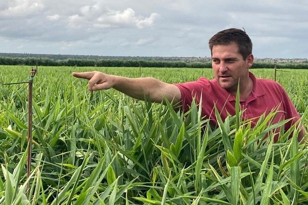 Joachim Prinsloo della Sunreaped in un campo di zenzero, godendosi l'estate piovosa
