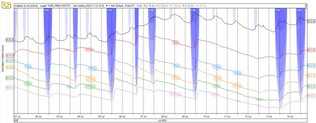 Dal momento in cui è stata installata la sonda (vedi foto), cioè quando è stato possibile conoscere come si comportava la pianta in termini di assorbimento, la prima conseguenza è stata la variazione dell'irrigazione.