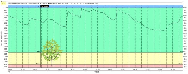 [Si noti la produzione più contenuta di questa pianta. La sonda è stata installata in una porzione di appezzamento dove le piante mostravano sintomi di fisiopatia più marcati].
