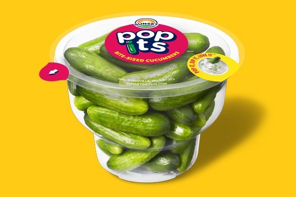 Lanciati di recente in Canada, negli Stati Uniti e nel Regno Unito, e candidati al Best Snackable Produce Showcase di quest'anno, i cetrioli SUNSET Pop Its sono cetrioli in formato snack. Con una lunghezza massima di cinque centimetri, si tratta dei cetrioli SUNSET più piccoli mai realizzati.