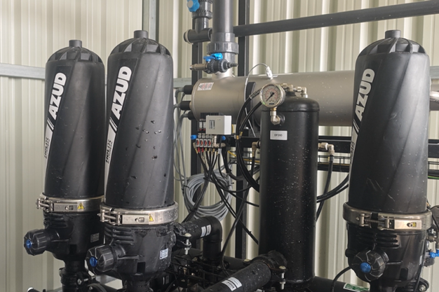 "Nella prima fase, la filtrazione meccanica viene effettuata utilizzando unità automatiche AZUD Helix ad aria compressa, con due livelli di filtrazione a 100 e 5 micron, che rimuovono la maggior parte delle particelle organiche e inorganiche", spiegano dalla AZUD.