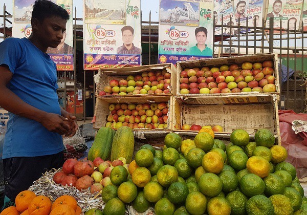 Banco della frutta a Dacca, Bangladesh