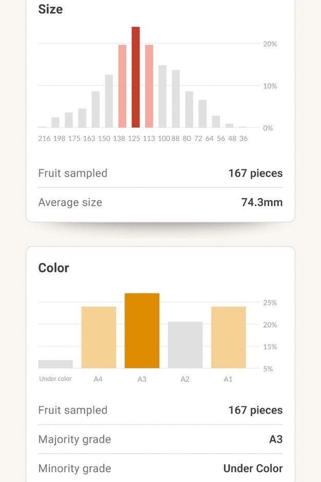 Il focus di Hectre rimane chiaro: automatizzare la campionatura della frutta analizzando immagini di bins o casse acquisite tramite telecamere fisse o dispositivi mobili, sia in campo che appena la frutta entra in magazzino. Attraverso soluzioni come Arc TopDown (per la misurazione automatica di calibro e colore al ricevimento); Receiving e Controllo Qualità (per una visibilità completa su ogni lotto), le aziende possono effettuare una campionatura precisa e specifica della frutta immediata. Ciò permette di ottenere informazioni su distribuzione dei calibri in percentuale e distribuzione del colore in percentuale.