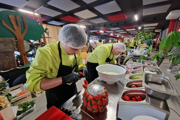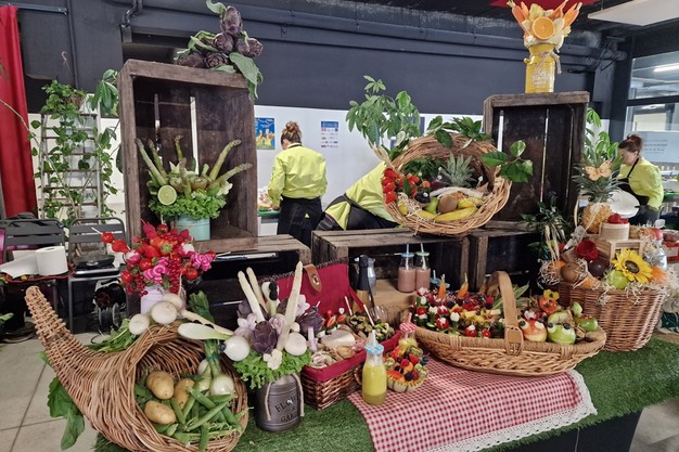 Durante tutta la mattinata, i 16 candidati hanno dovuto pelare, tagliare, affettare, mescolare, spremere, cucinare e condire i loro prodotti per creare un'esposizione attraente e colorata di frutta e verdura primaverile, un'offerta in stile rustico di bouquet di frutta e verdura e cesti di frutta, nonché cesti pranzo pronti da consumare per "mini-tribù" e coppie.