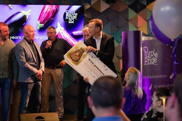 Venerdì 17 aprile 2026, l'associazione di coltivatori Purple Pride ha celebrato il suo 30° anniversario insieme a tutti i coltivatori, al personale addetto alla coltivazione, ai partner della filiera e ai fornitori. Il tema di quest'anno è stato "30 anni di melanzane". Insieme a Pleun van Duijn, uno dei membri fondatori, ripercorriamo il passato e guardiamo al futuro.