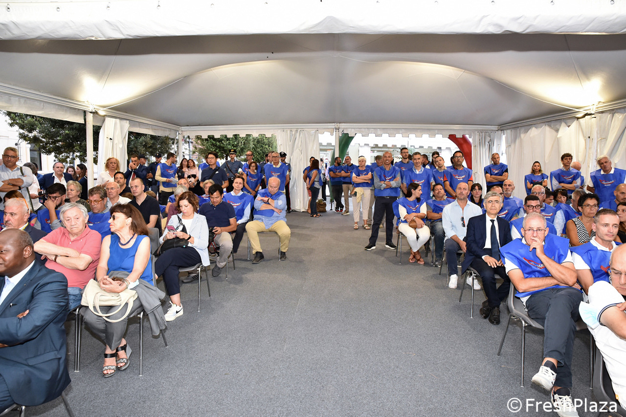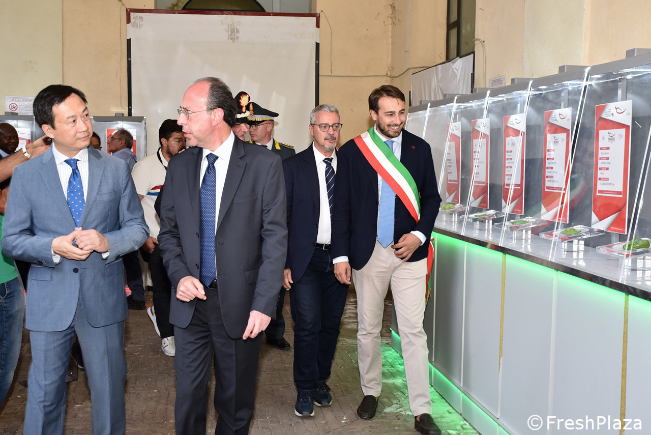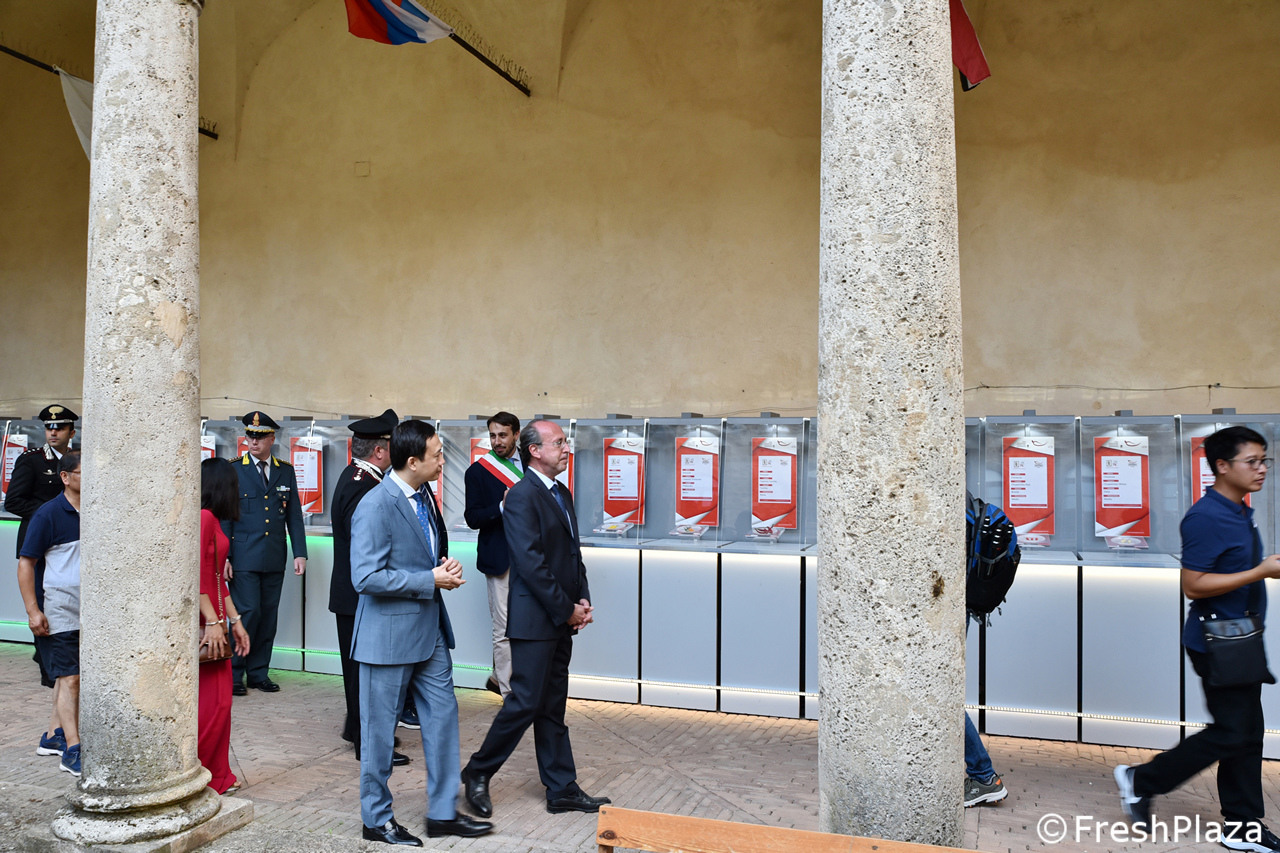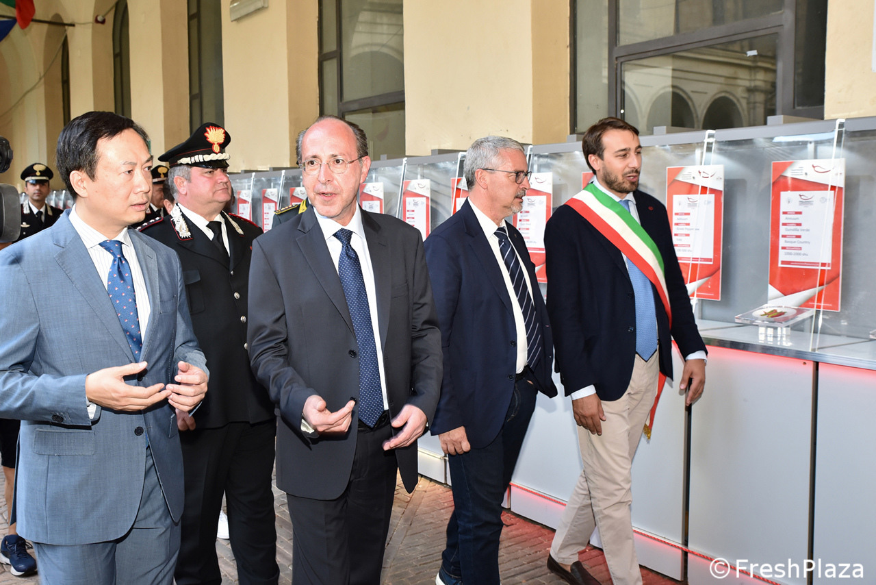 Le autorità in visita alla mostra campionaria. Primo sulla sinistra, l'ambasciatore del Vietnam in Italia, Duong Hai Hung, paese estero che, insieme all'Ecuador, partecipa a questa edizione della fiera.