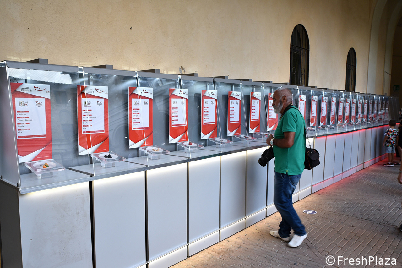 Ciascuna teca espone una varietà di peperoncino, indicandone nome, origine geografica e piccantezza misurata sulla scala Scoville. Le varietà in esposizione vengono allevate nella Piana reatina, presso il Centro Appenninico del Terminillo - C. Jucci. I campi catalogo sono visitabili nei giorni della fiera, previa prenotazione (Tel. 0746 755091).