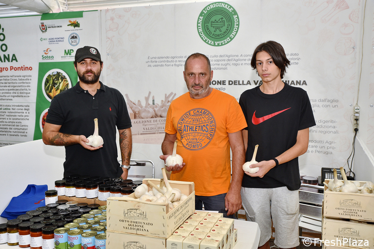 In rappresentanza della ditta Orto Fortunato con sede a Cortona (AR) troviamo Andrea, Eros e Gioele. Lo stand ha esposto l'Aglione della Valdichiana, un aglio di grandissima taglia.