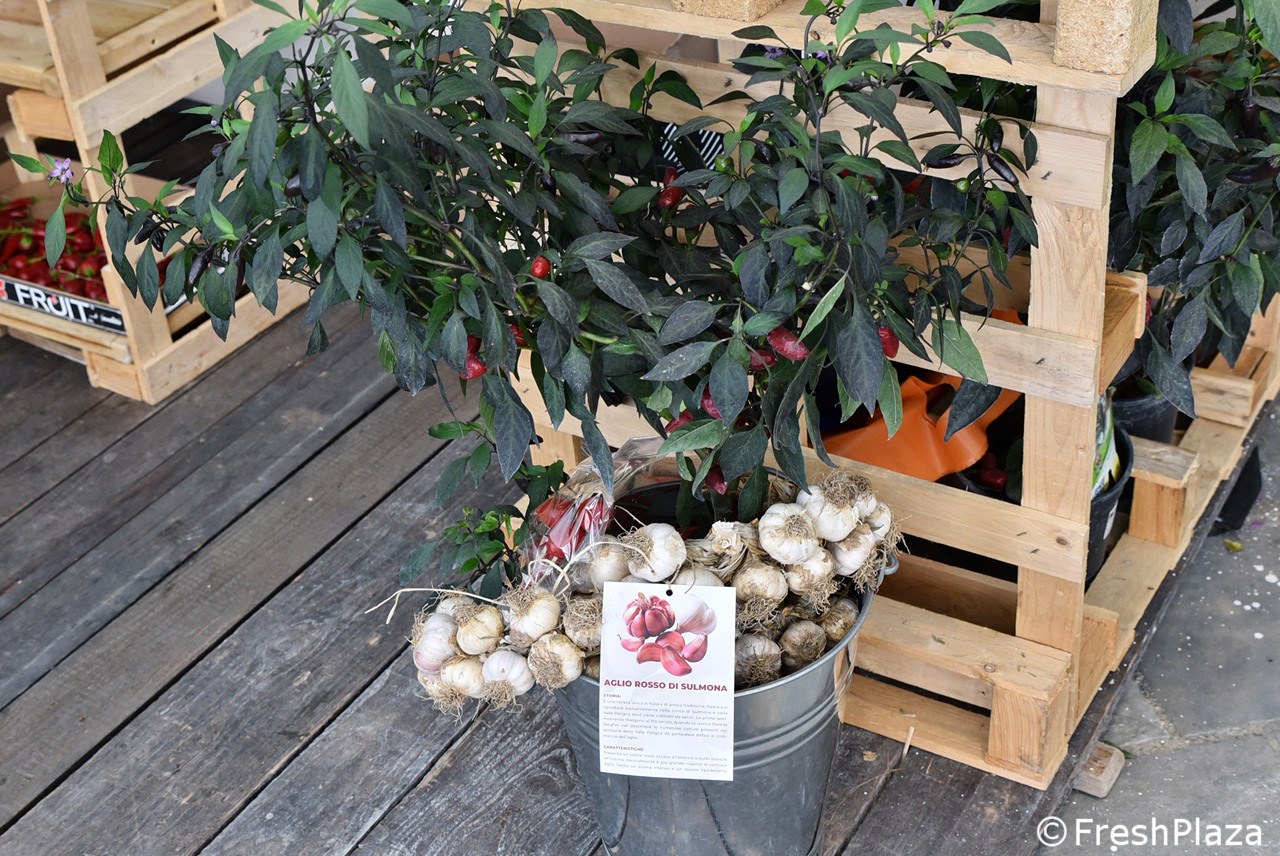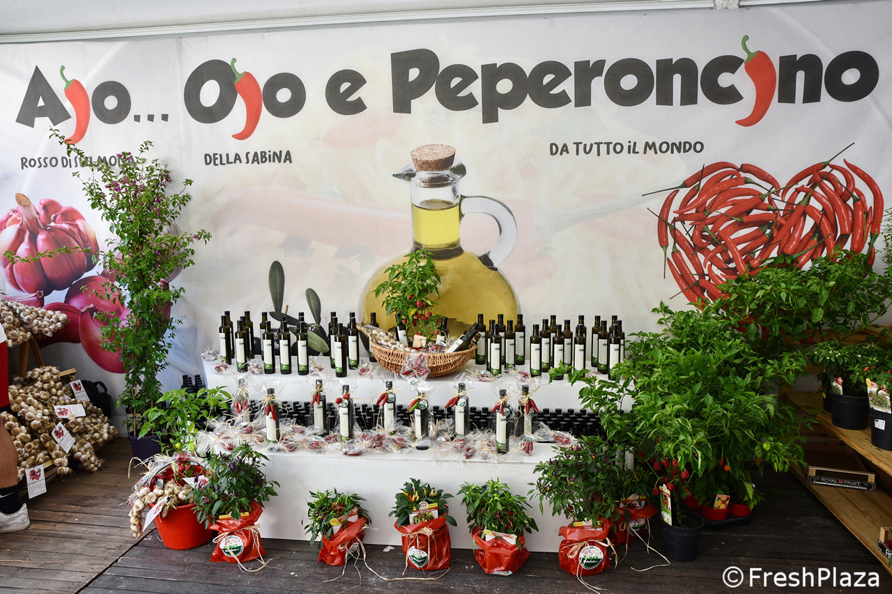 Oltre all'aglio rosso di Sulmona, l'area espositiva ha presentato piante di peperoncino e bottiglie di olio della Sabina DOP.