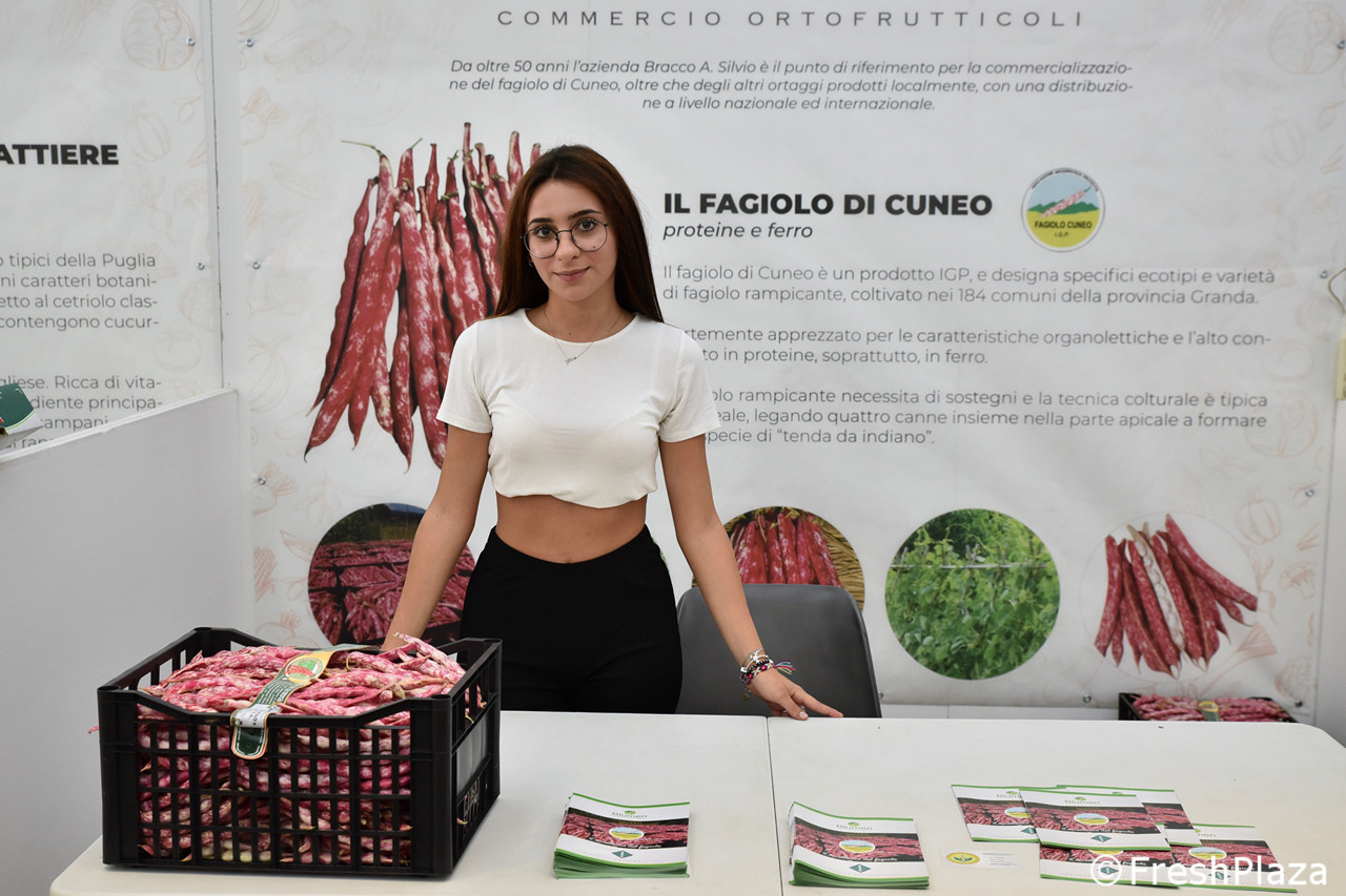 A presenziare lo stand del Fagiolo di Cuneo, l'hostess Elisa Paniconi.