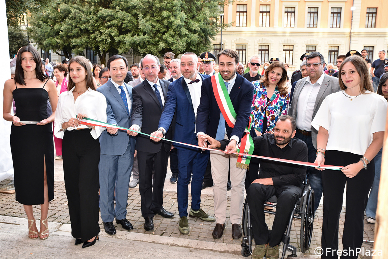 Il momento dell'inaugurazione dell'area "Sapori Italiani" da parte del Sindaco e di altre autorità.
