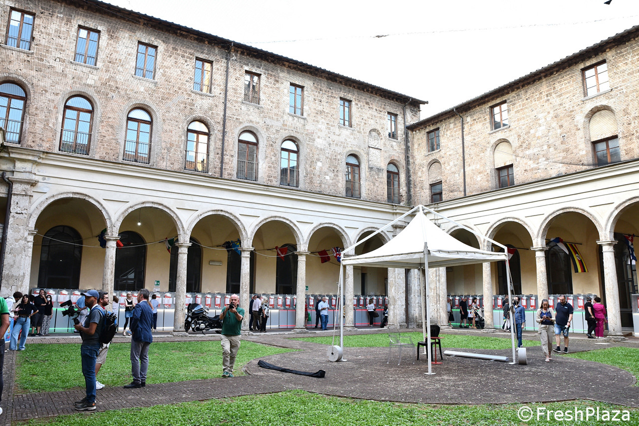 L'esposizione delle centinaia di varietà di peperoncino è ospitata all'interno di questo chiostro, in Piazza Mazzini, a Rieti.
