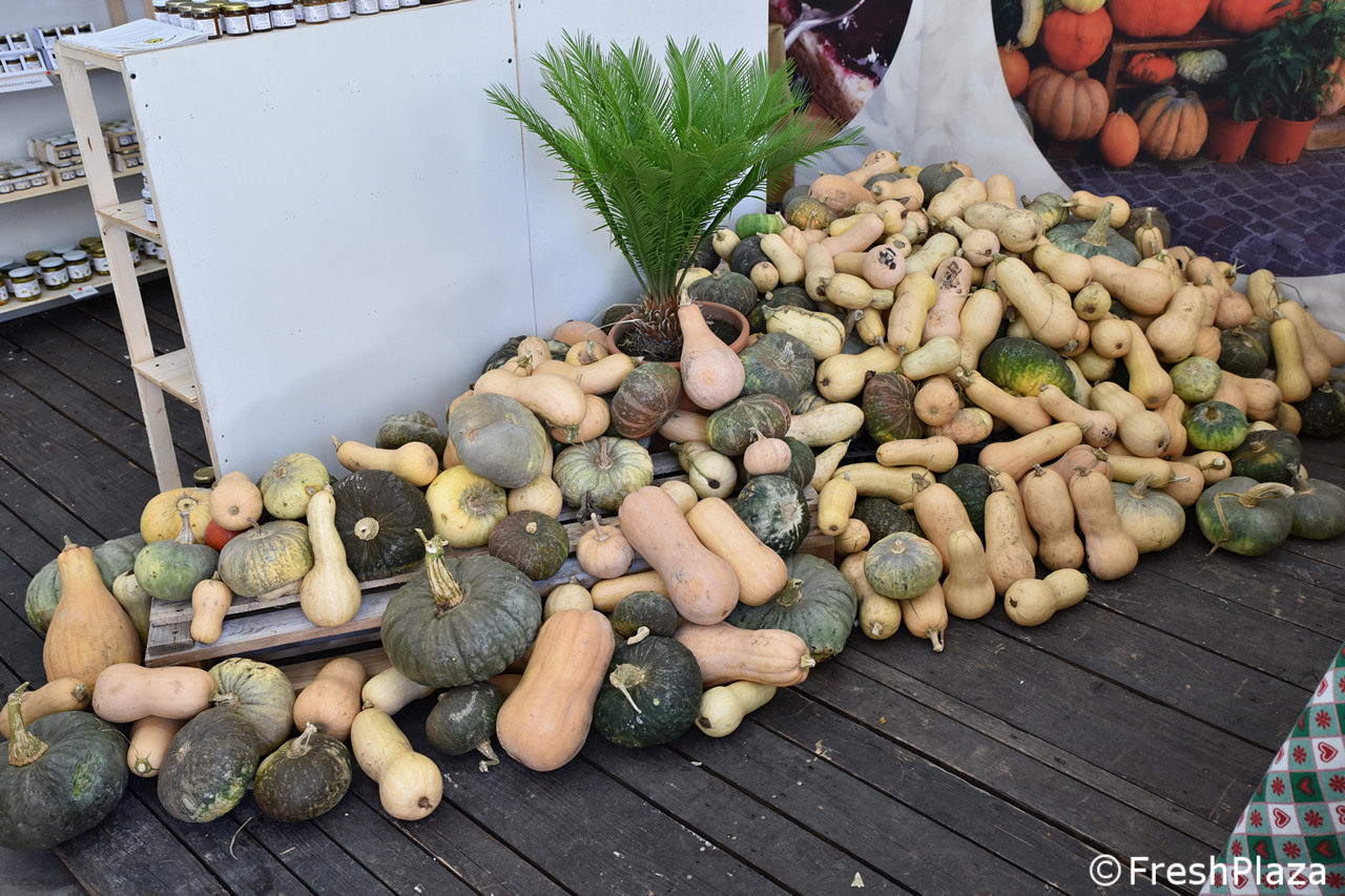 Esposizione di zucche per tutti i gusti a cura dell'azienda Serra Madre di Roma. La zucca è un ortaggio che contiene poche calorie, alta concentrazione di beta-carotene, vitamine A e C, fibre e sali minerali come calcio, magnesio, potassio, fosforo e ferro.