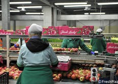 Dopo la visita in campo le classi sono state accompagnate in stabilimenti Granfrutta Zani a Bagnacavallo (Ravenna), dove viene selezionata Pink Lady