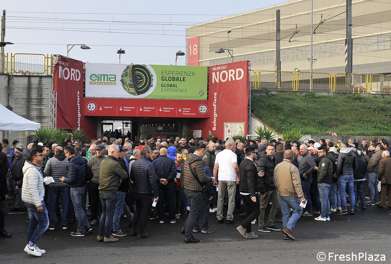 Una marea di visitatori ha invaso la fiera di Bologna dal 9 al 13 novembre 2022 per l'Eima, la fiera della meccanizzazione agricola. Stimate oltre 200mila persone. Venerdì 9 novembre alle 7,45 del mattino, un'ora e 15 minuti prima dell'apertura dei cancelli, un ingresso si presentava già così (fotoservizio Cristiano Riciputi)