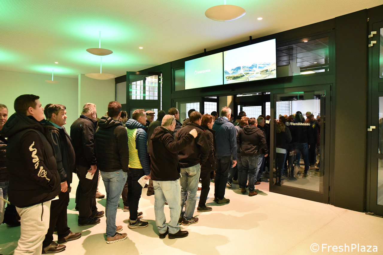 Grande successo di pubblico per Interpoma 2022. In foto, la coda all'ingresso al mattino del secondo giorno.