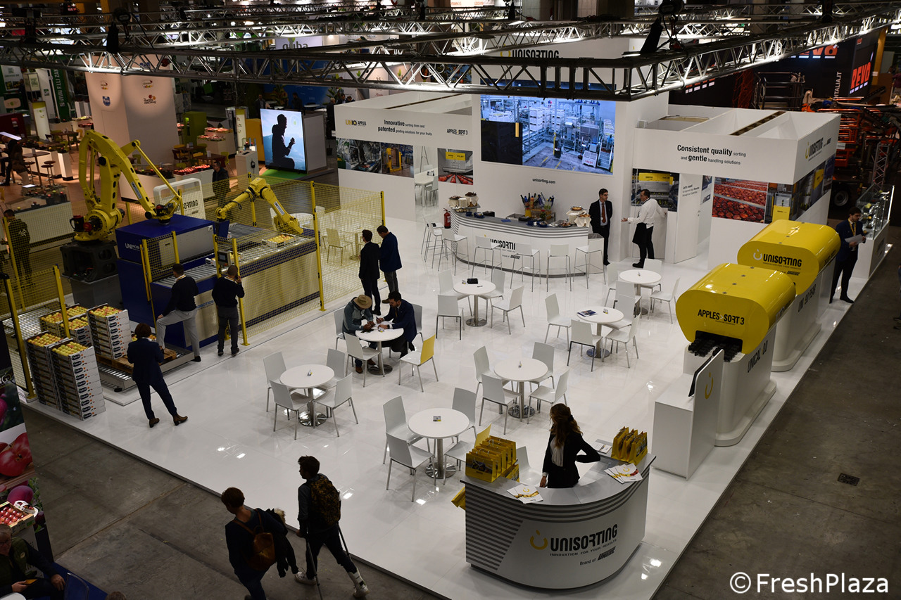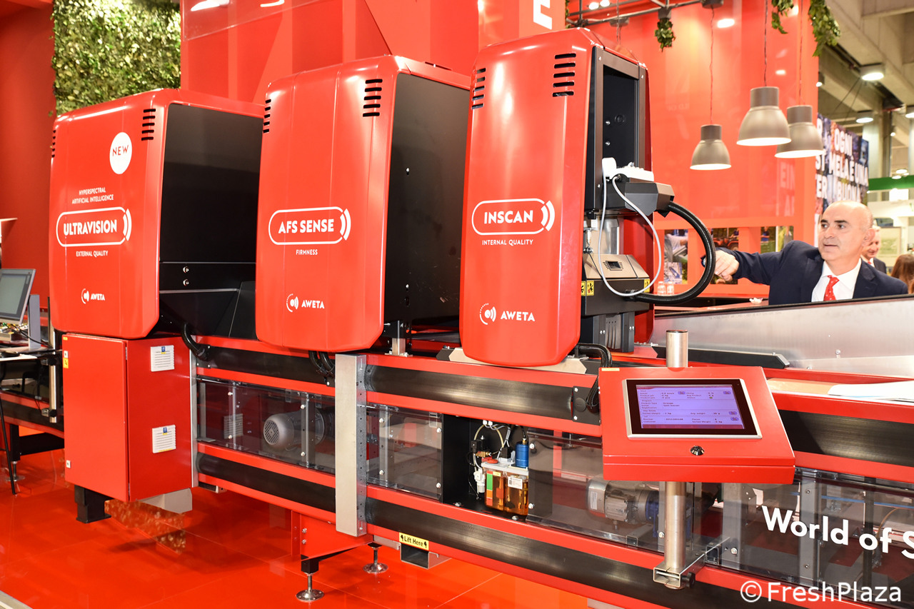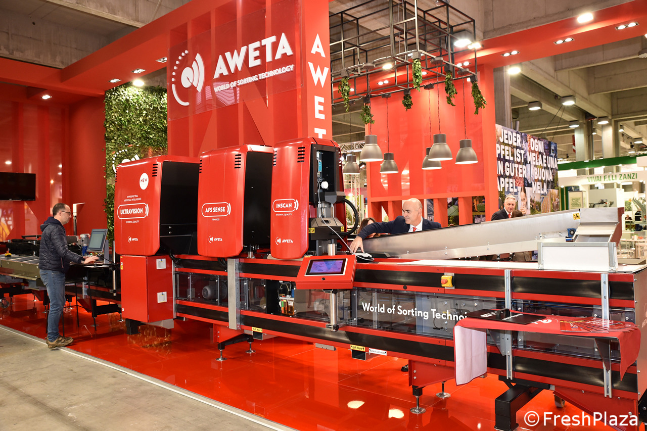 Stand Aweta, azienda specializzata in soluzioni per la selezione e il confezionamento di frutta e verdura